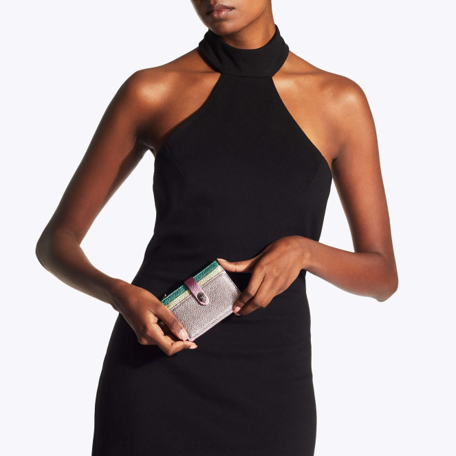 El Kensington multitarjeta está elaborado con cuero flor granulado. la cabeza de águila plateada envejecida presenta cristales.